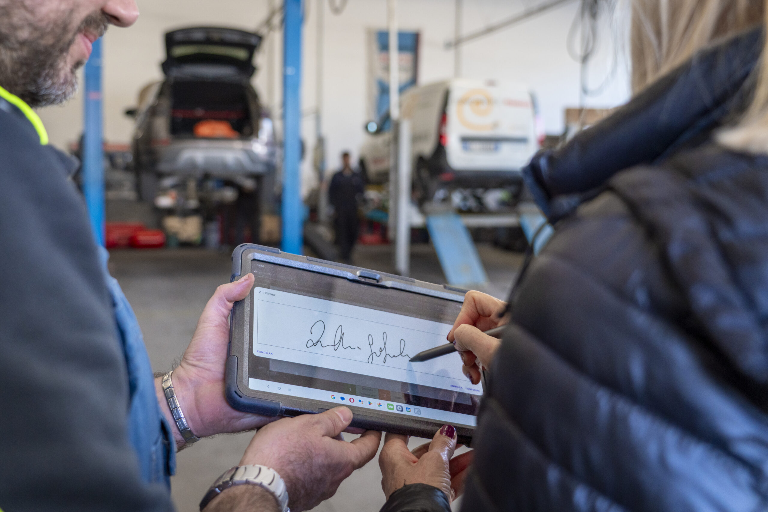 The e-Sign service allows you to find documents quicker and to organise your office space more effectively, because it no longer needs to be taken up by pile of papers. It also conveys a more up-to-date and professional image of your workshop to customers, who are now used to managing everything from tablets or smartphones.