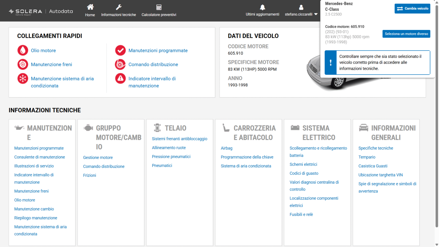 Risparmio di tempo nel reperimento delle informazioni tecniche sui veicoli