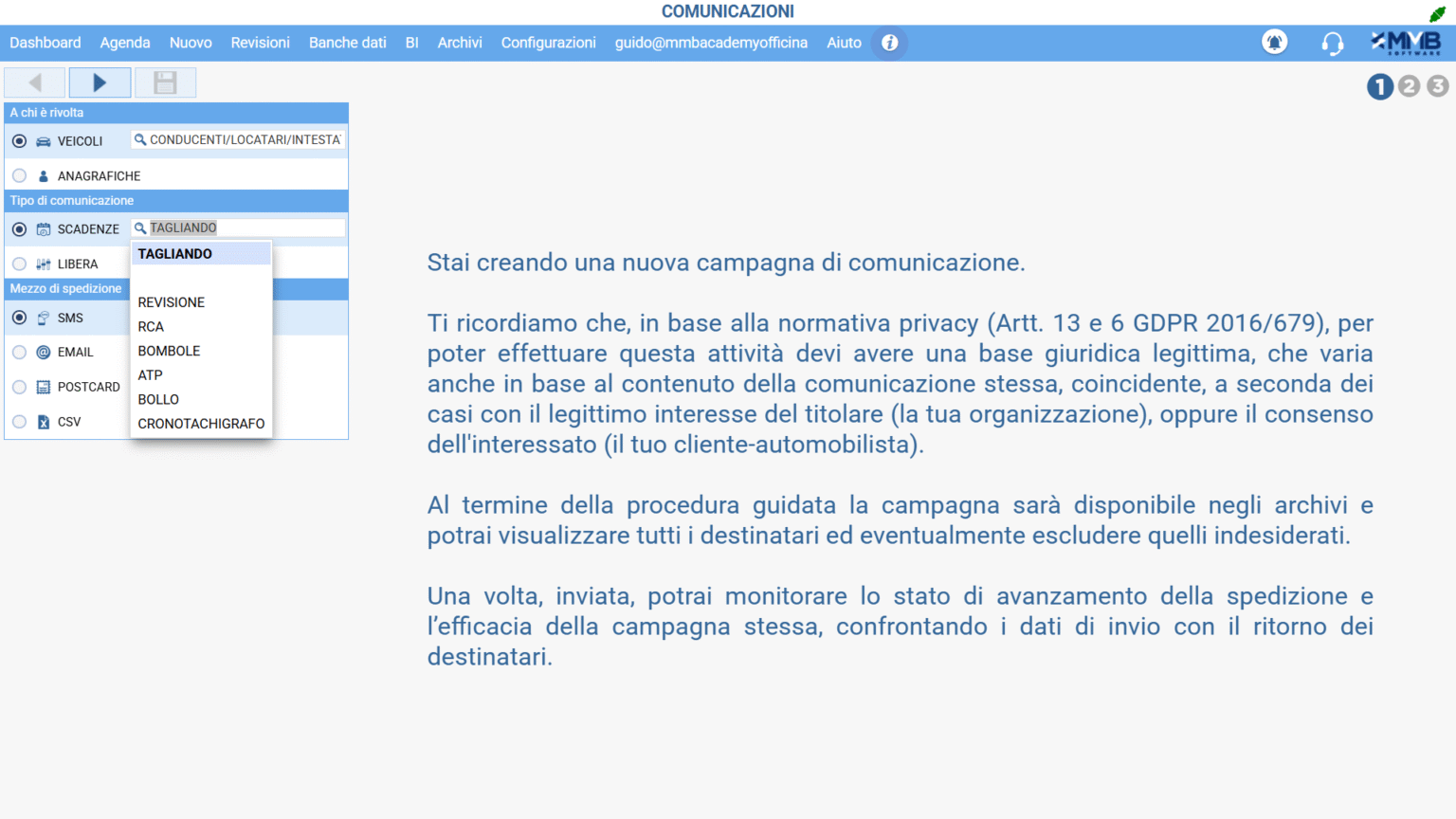 Grazie al servizio SMS di MMB puoi sfruttare questa possibilità direttamente dal gestionale YAP, inviando messaggi istantanei sia con finalità di promemoria sia per comunicare promozioni e nuovi servizi, filtrando i destinatari a partire dalle informazioni censite nel tuo database. Le campagne di SMS sono particolarmente utili per le comunicazioni last minute o urgenti, come la revisione in scadenza o scaduta, la necessità di effettuare il cambio gomme o iniziative promozionali con durata limitata. Inoltre l’SMS è uno strumento fondamentale per ricordare appuntamenti o mandare comunicazioni informative brevi, quali la disponibilità della macchina per il ritiro da parte del cliente. Tutte iniziative che ti permettono di fidelizzare il tuo cliente, favorendo il suo ritorno nella tua officina.