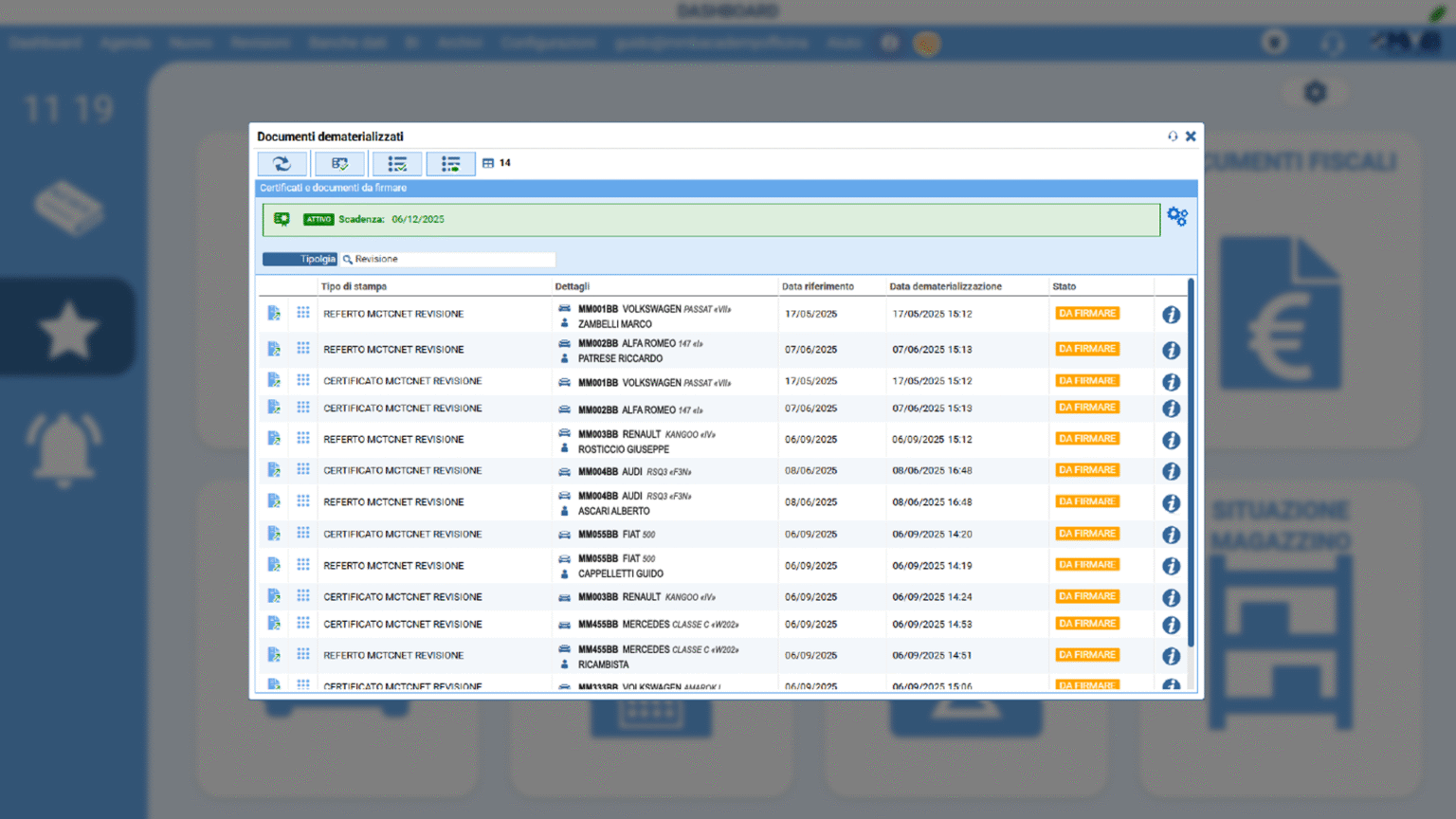Una piattaforma unica, accessibile ovunque e in ogni momento, che integra tutte le funzionalità necessarie a centri revisione, officine e gommisti.